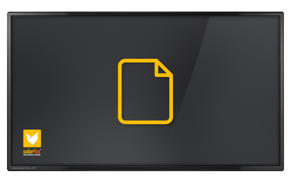 With the document viewer, files in PDF format can be integrated into the slideshow. You can enter a path to a document and upload the document. Compatible with: Solarfox SF-300...